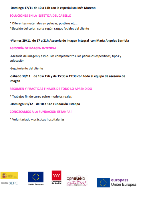 • Técnicos en estetica integral: Maria Ramos, Miriam Montoya, Ainhoa Del Campo, Pilar Yepes,